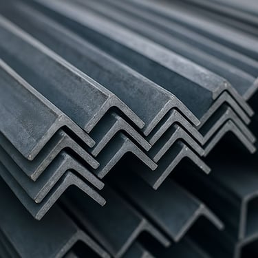 L-shaped structural steel for frames, brackets, and reinforcements. Available in equal and unequal leg configurations.